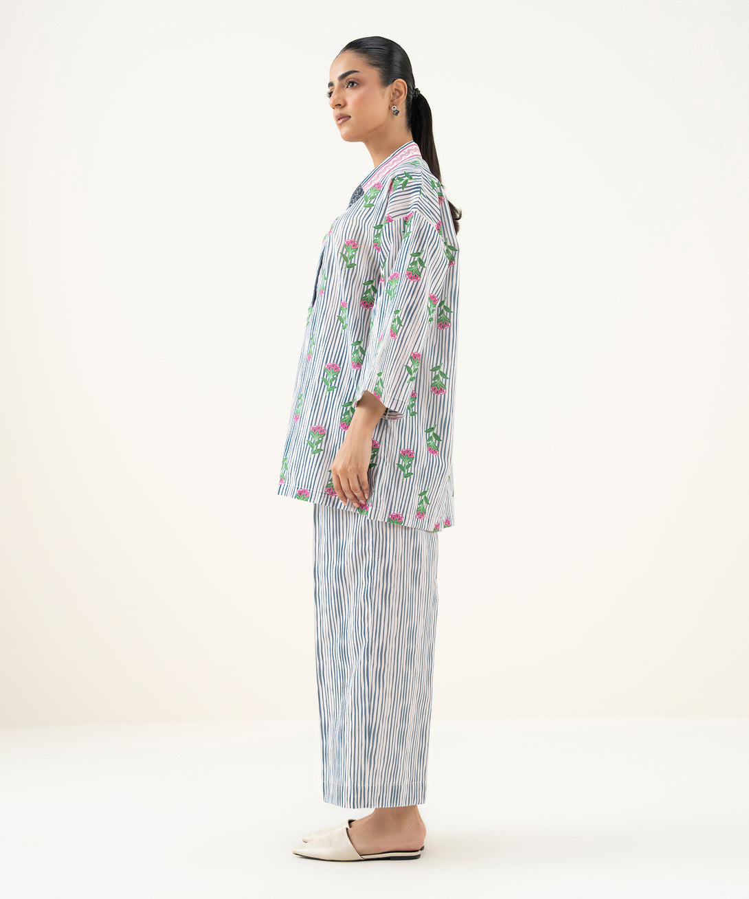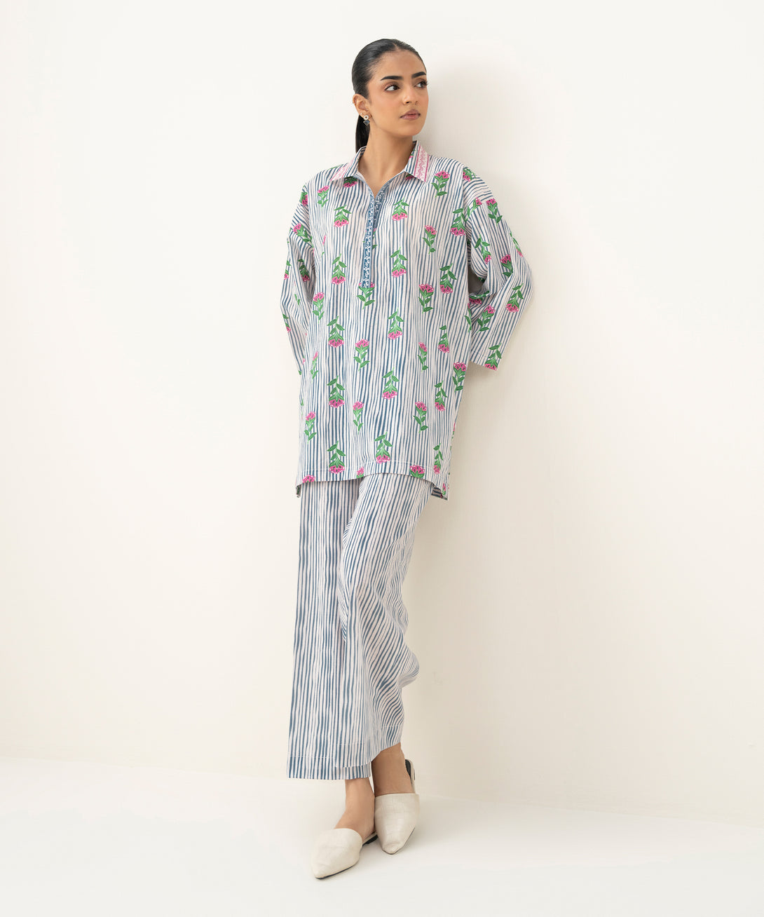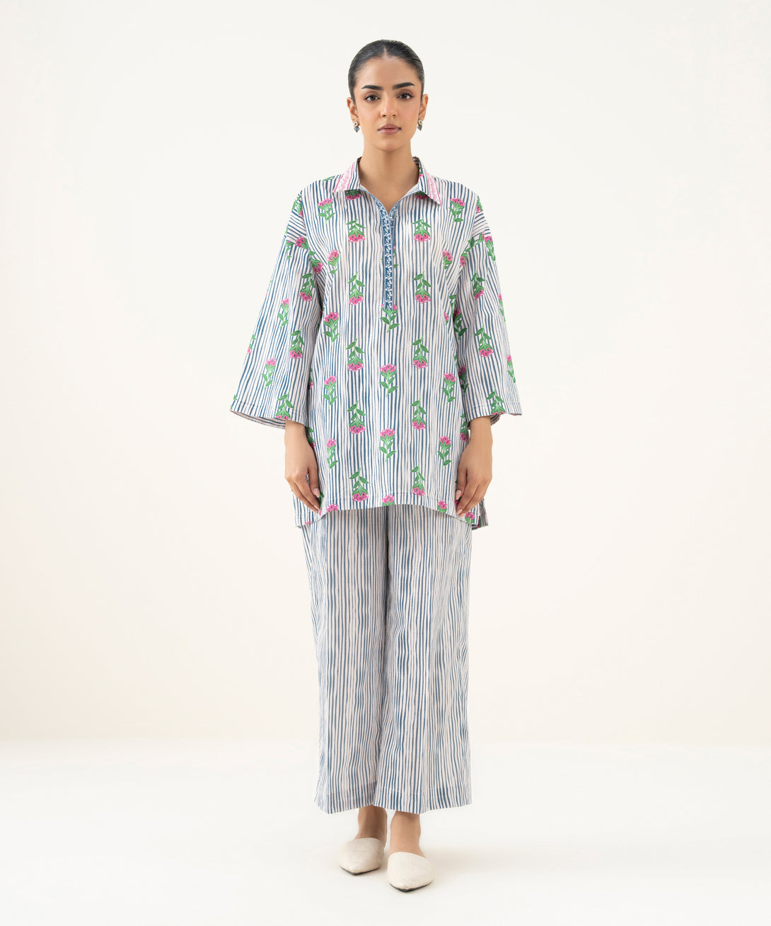 Printed Front Panel, Printed Back Panel, Collar With Placket Neckline, Full Sleeves, Short Length