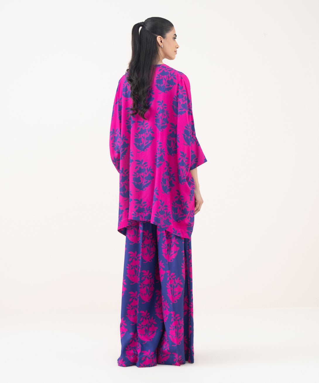 Upgrade your style in our printed pink viscose linen boxy shirt featuring a band neckline with placket.