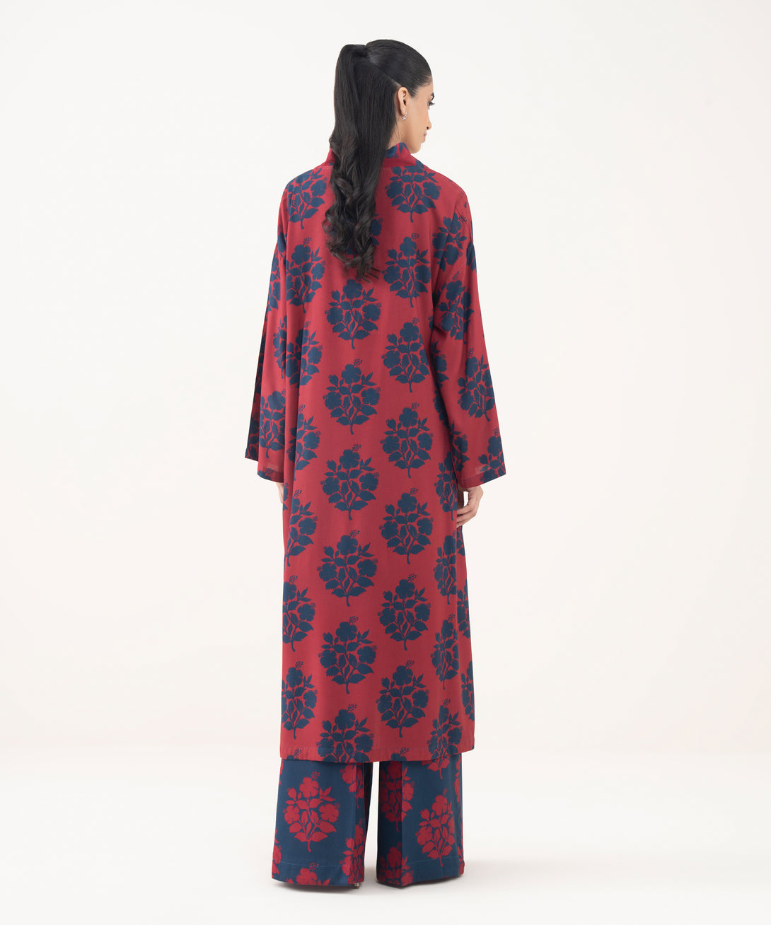 Printed Front Panel, Printed Back Panel, Shawl Neckline, Full Sleeves, Long Length