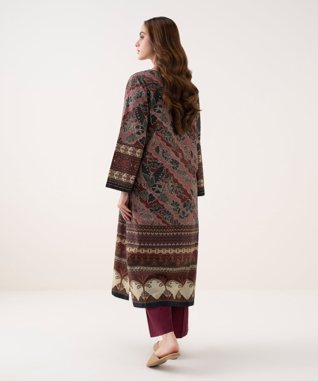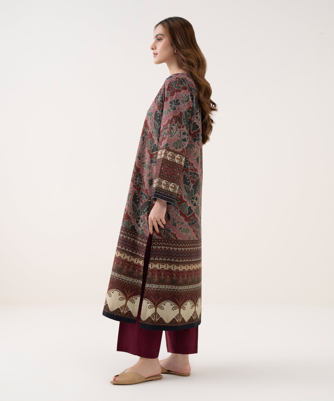 Dyed With Top Stitch Front Panel, Printed Back Panel, Round With Slit Neckline, Full Sleeves, Long Length