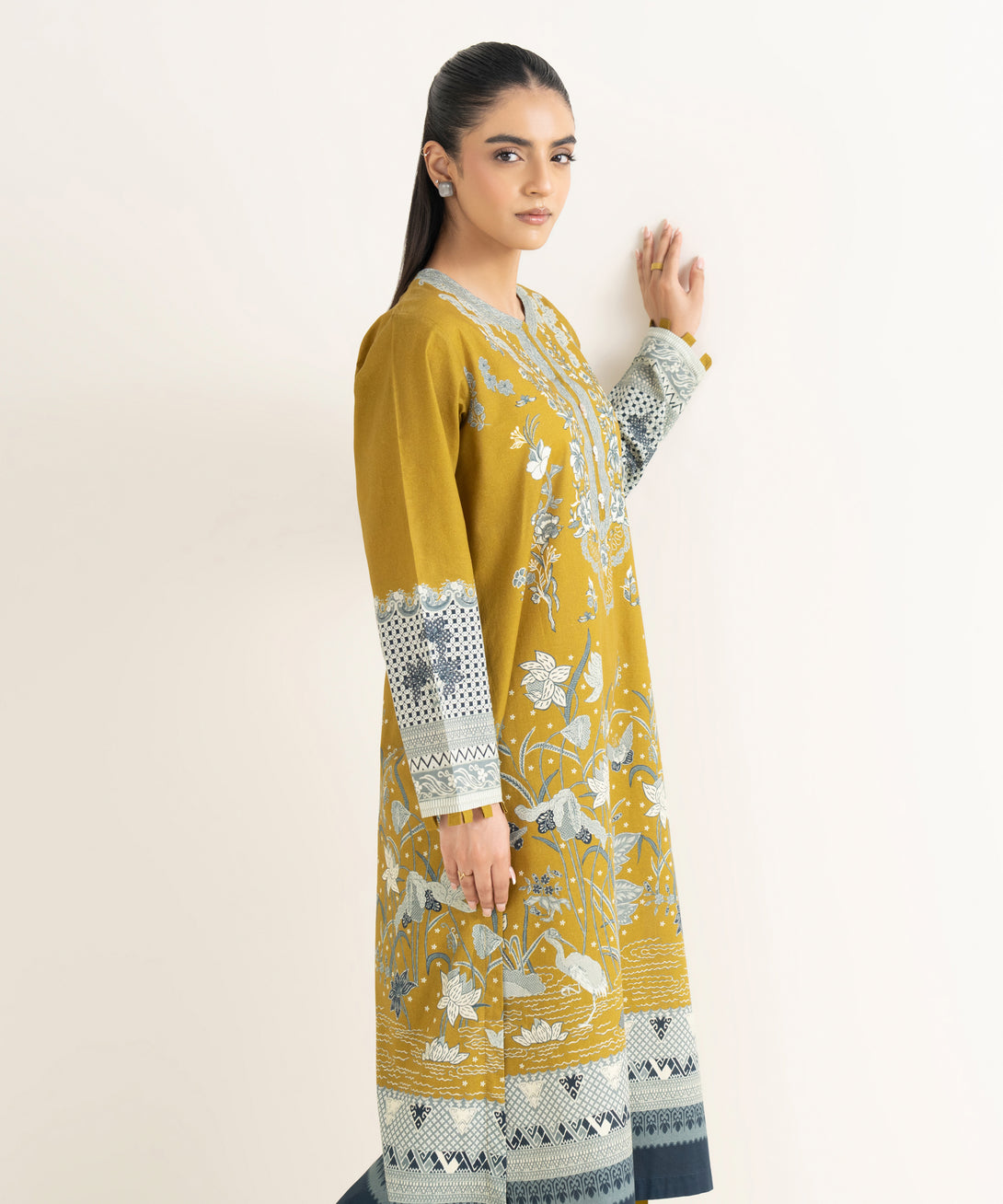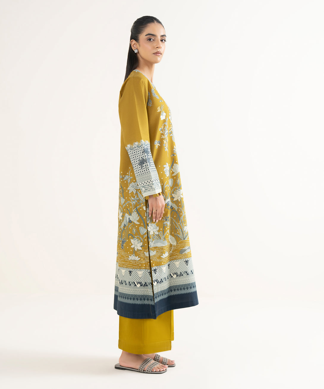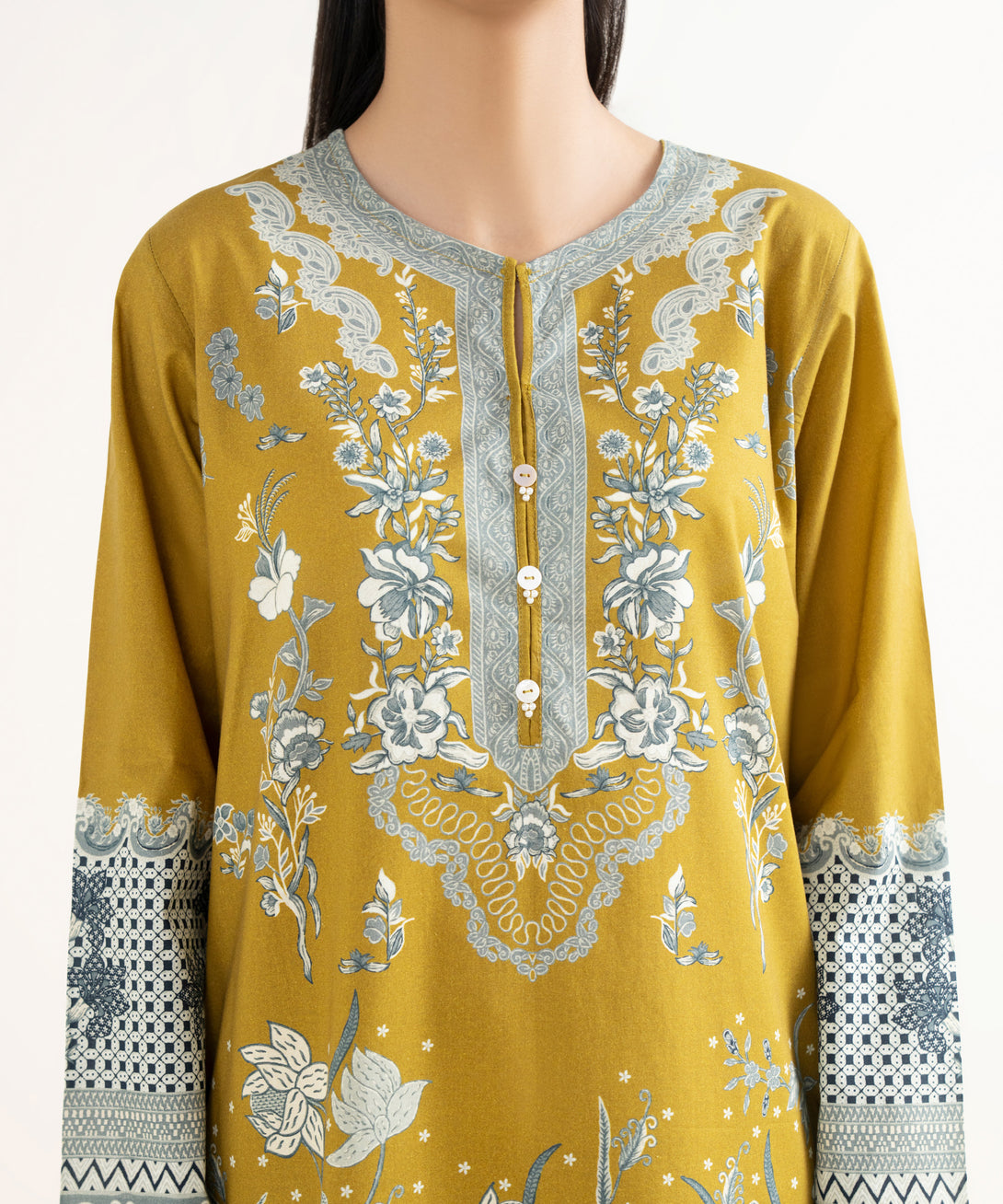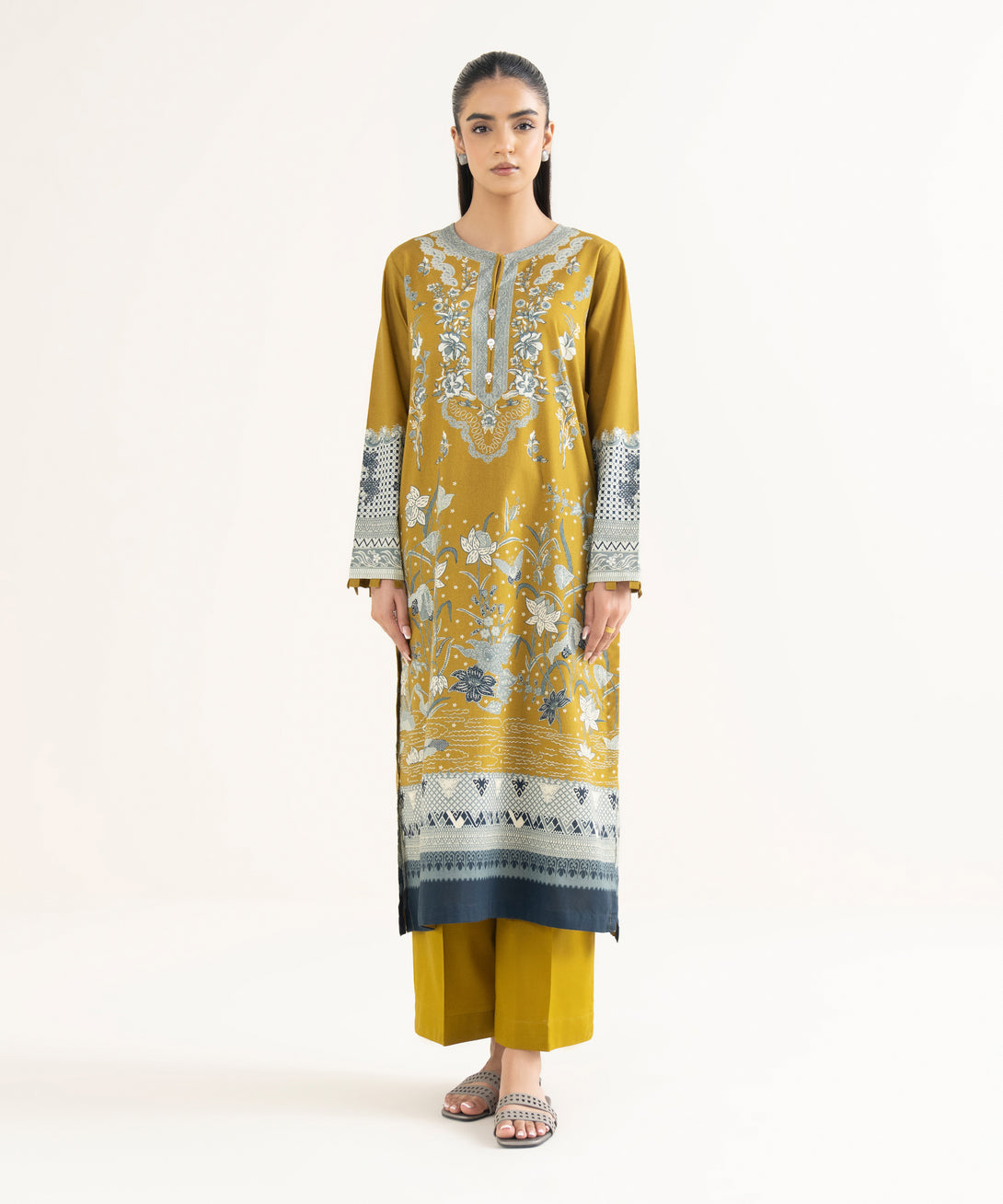 Printed Front Panel, Printed Back Panel, Round With Slit Neckline, Full Sleeves, Long Length