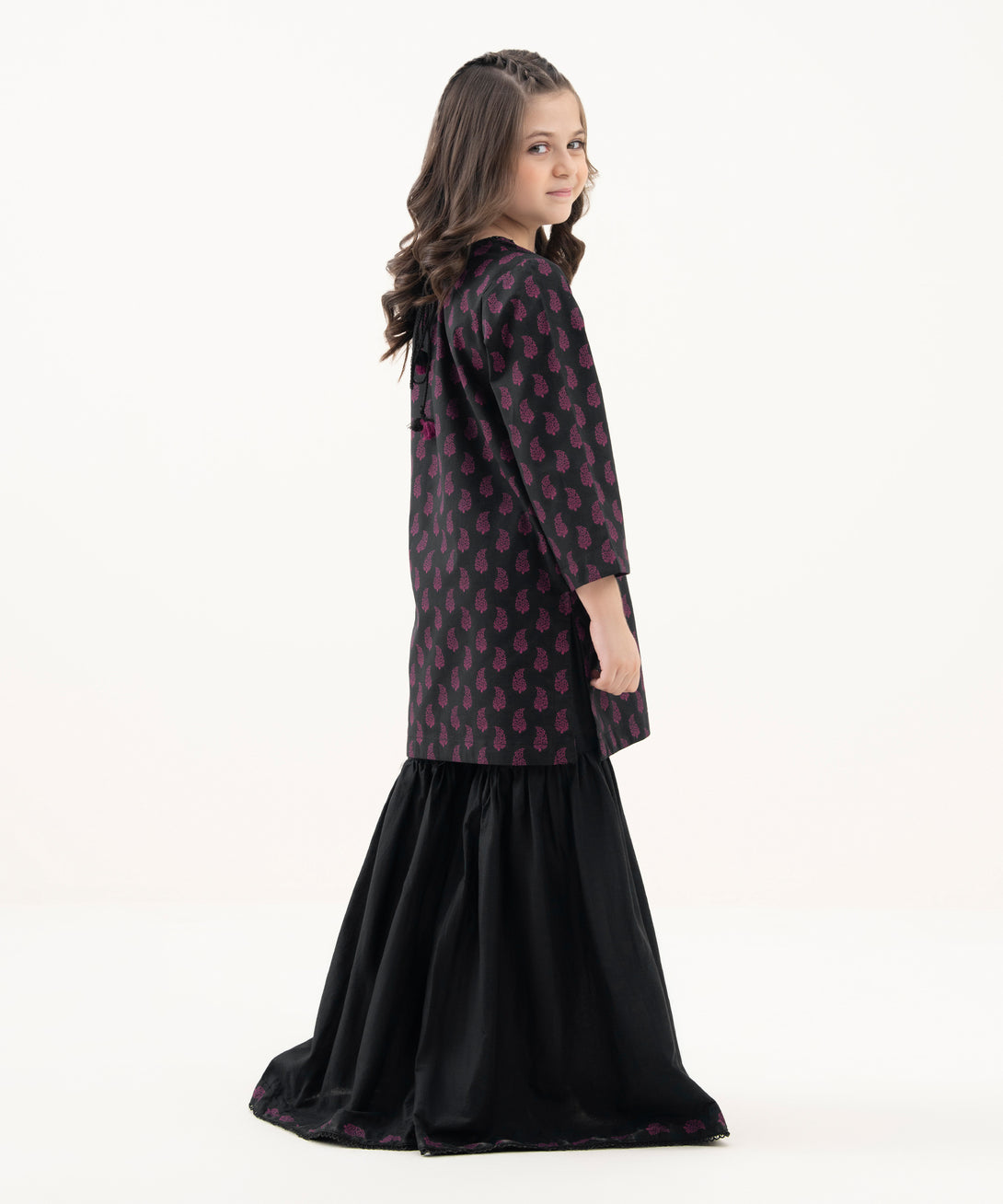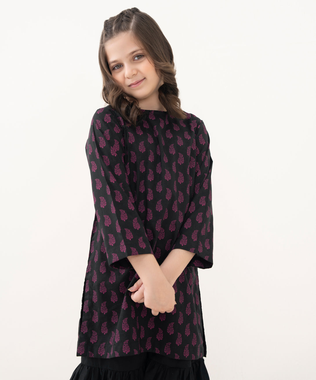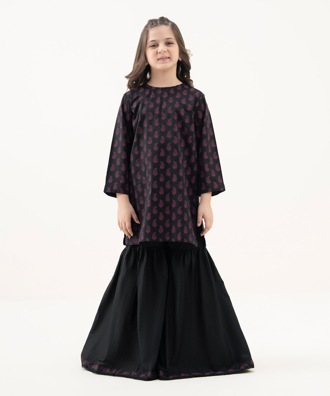 Dress your little one in our printed black cotton viscose straight shirt and gharara.