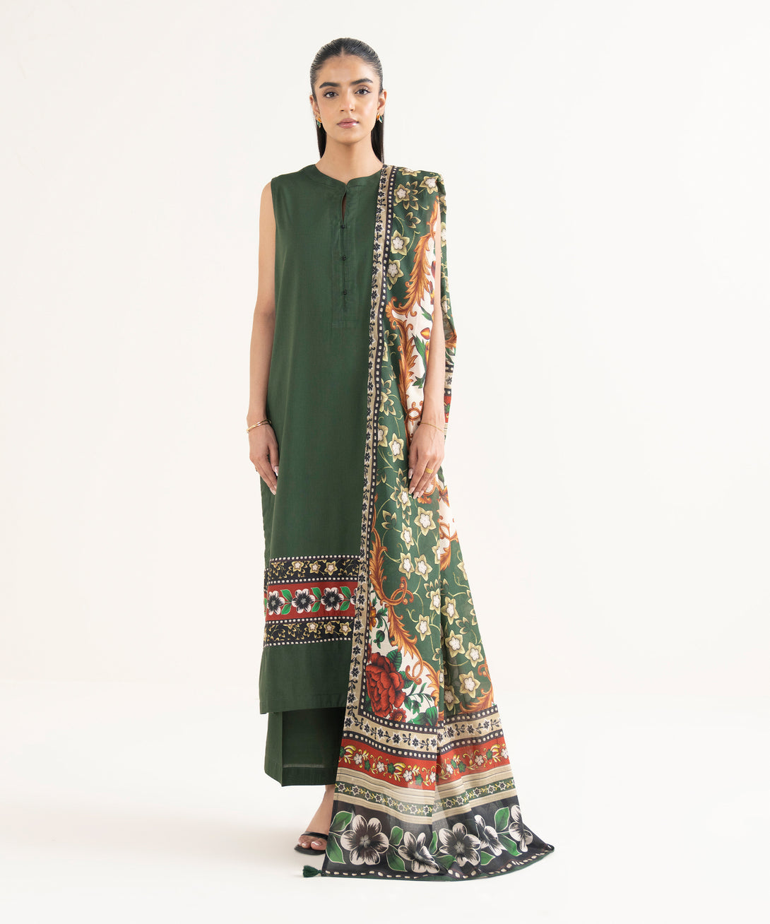 Complete your outfit with our printed green voile dupatta.